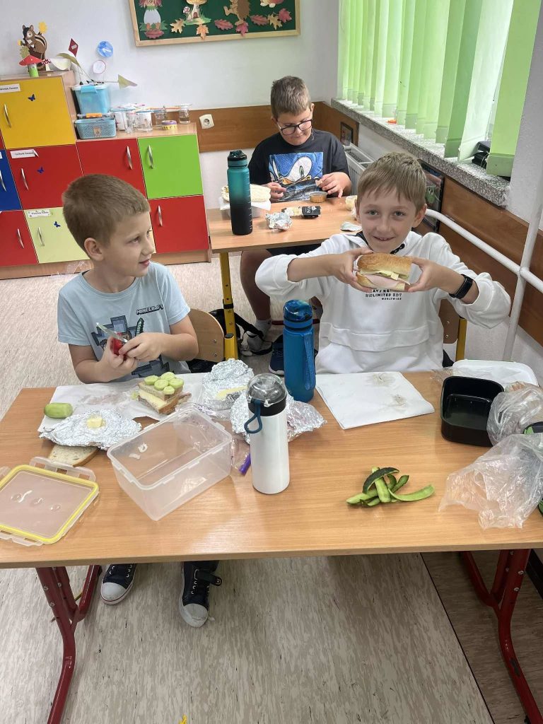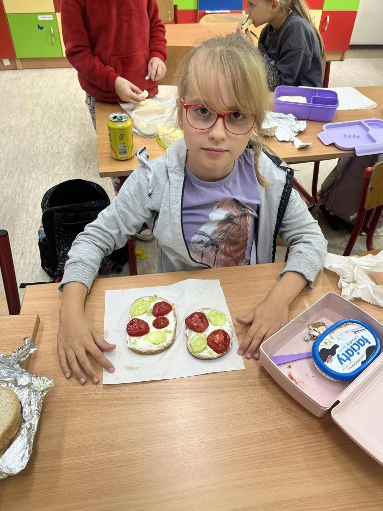 5 listopada, odbyło się spotkanie uczniów klas I-III z panią pielęgniarką. Nasz gość opowiadał nam o zdrowym odżywianiu. Pani Ania zaprezentowała dzieciom piramidę zdrowego żywienia i krok po kroku objaśniała, co znajduje się na poszczególnym poziomie dobrze znanego nam trójkąta. Zdrowa żywność to wszelkie produkty spożywcze, potrzebne do zaspokojenia podstawowych potrzeb pokarmowych człowieka. To przede wszystkim owoce i warzywa, wszelkie produkty bogate w witaminy i inne składniki, niezbędne do prawidłowego funkcjonowania naszego organizmu. Dzieci z zainteresowaniem słuchały, ale i w aktywny sposób brały udział w dyskusjach. Po spotkaniu uczniowie przygotowali zdrowe i pyszne kanapki.