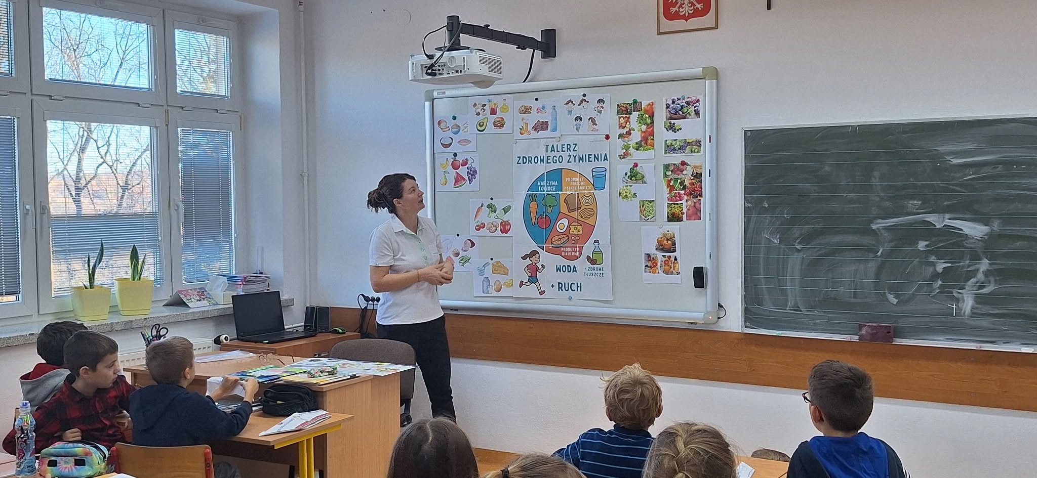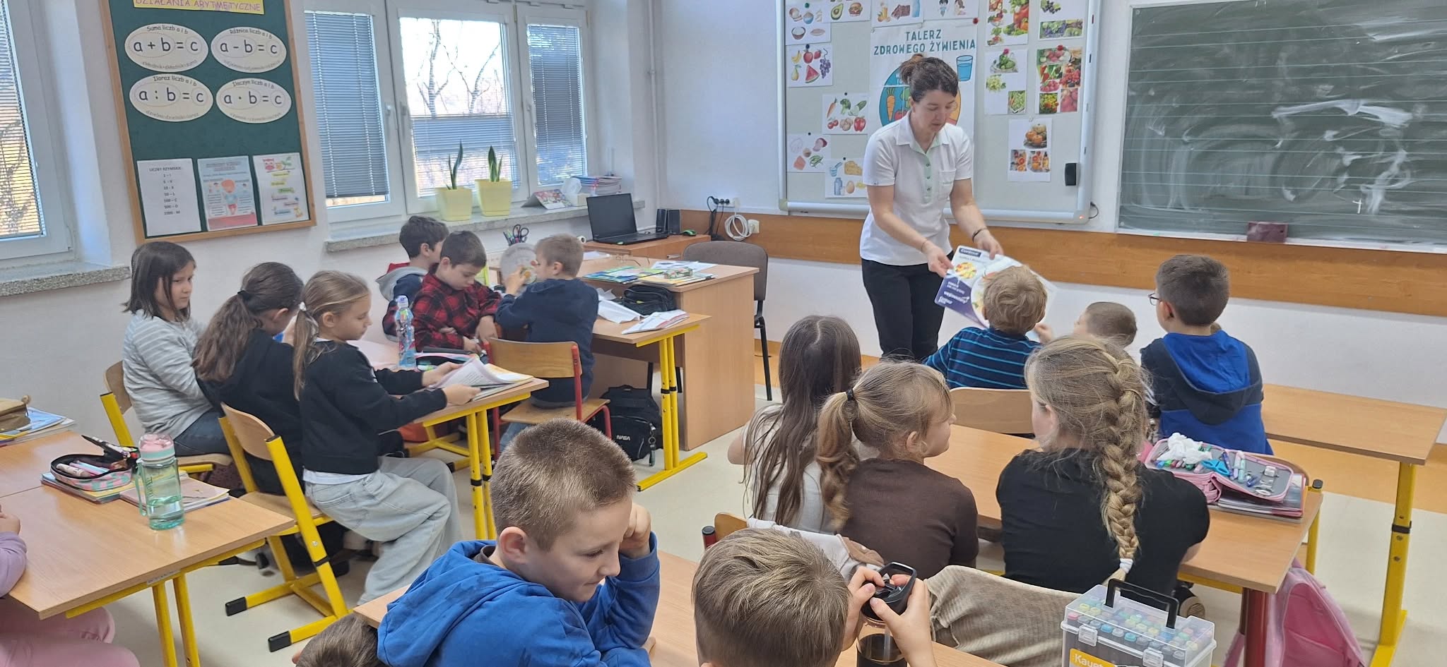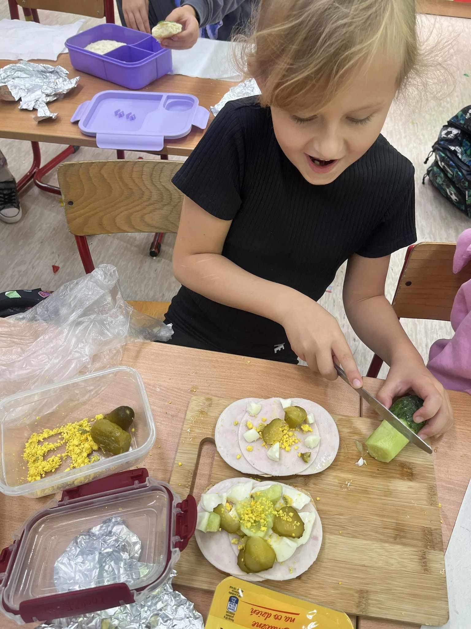 5 listopada, odbyło się spotkanie uczniów klas I-III z panią pielęgniarką. Nasz gość opowiadał nam o zdrowym odżywianiu. Pani Ania zaprezentowała dzieciom piramidę zdrowego żywienia i krok po kroku objaśniała, co znajduje się na poszczególnym poziomie dobrze znanego nam trójkąta. Zdrowa żywność to wszelkie produkty spożywcze, potrzebne do zaspokojenia podstawowych potrzeb pokarmowych człowieka. To przede wszystkim owoce i warzywa, wszelkie produkty bogate w witaminy i inne składniki, niezbędne do prawidłowego funkcjonowania naszego organizmu. Dzieci z zainteresowaniem słuchały, ale i w aktywny sposób brały udział w dyskusjach. Po spotkaniu uczniowie przygotowali zdrowe i pyszne kanapki.