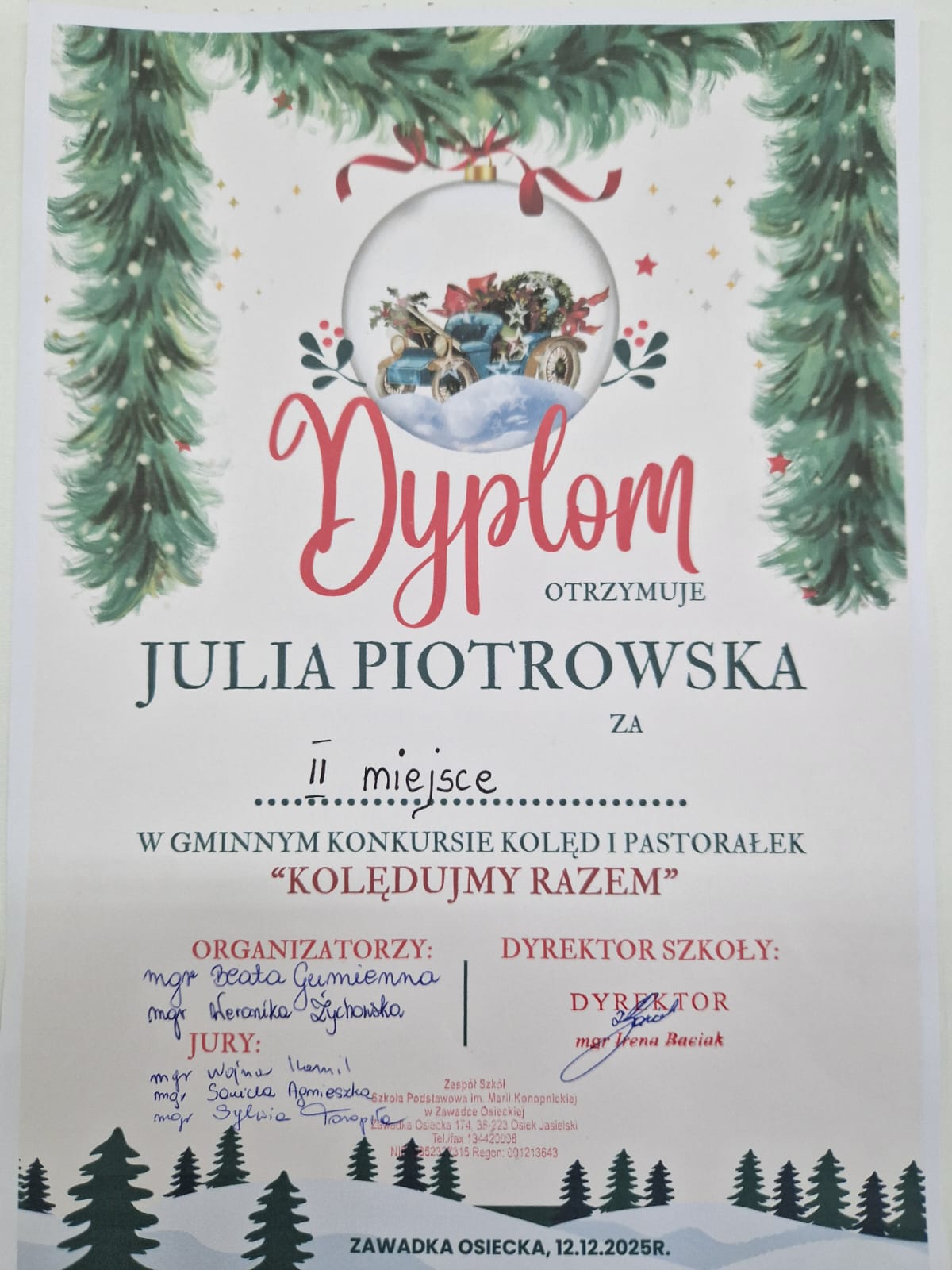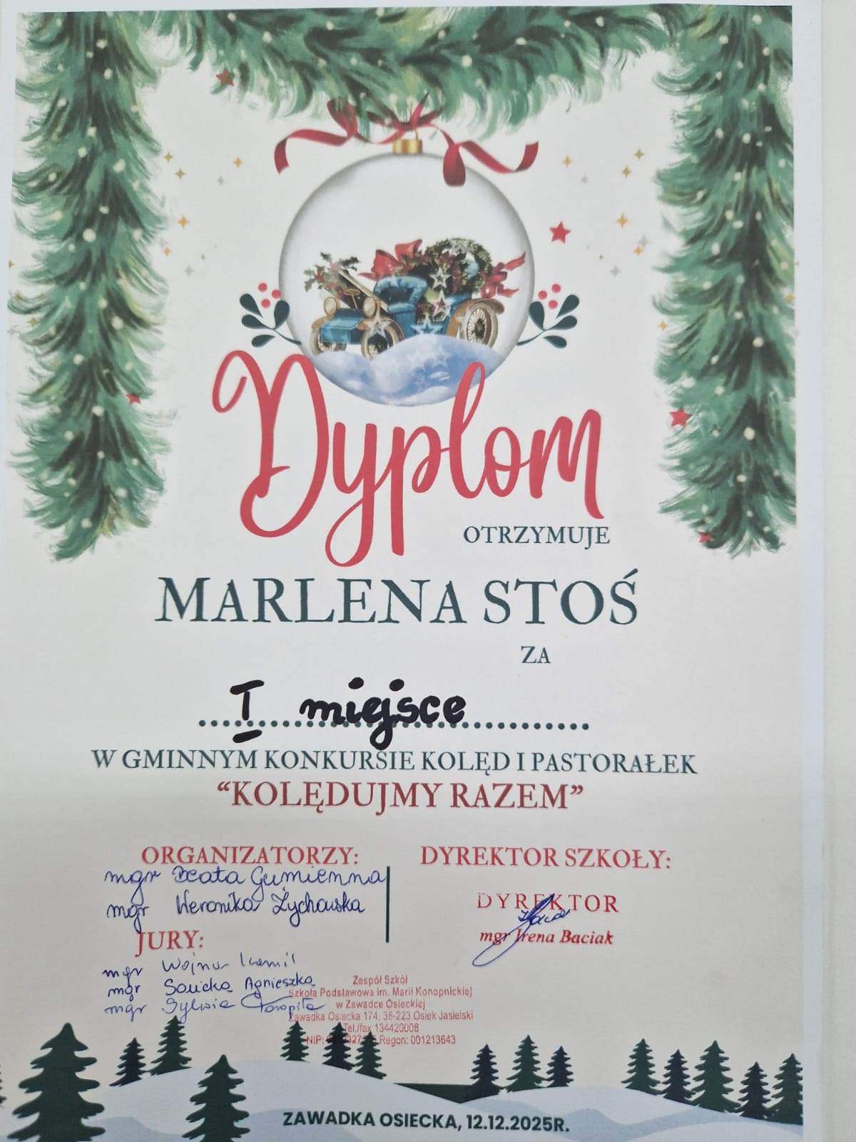 12 grudnia 2025r. w Szkole Podstawowej w Zawadce Osieckiej odbył się Gminny Konkurs Kolęd i Pastorałek "Kolędujemy razem".