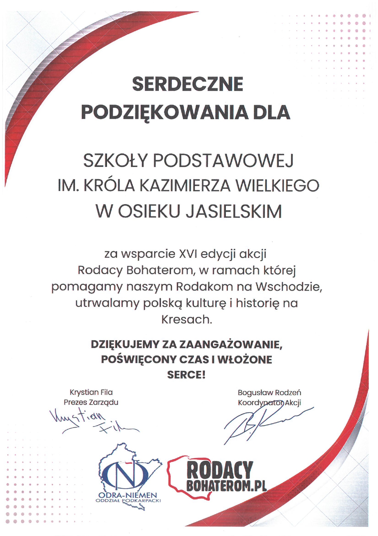 Nasz szkoła włączyła się w akcję "RODACY - BOHATEROM", organizowaną już od wielu lat przez Stowarzyszenie ODRA - NIEMEN. Oprócz darów rzeczowych, nasi uczniowie przygotowali kartki z życzeniami dla Polaków na Kresach.