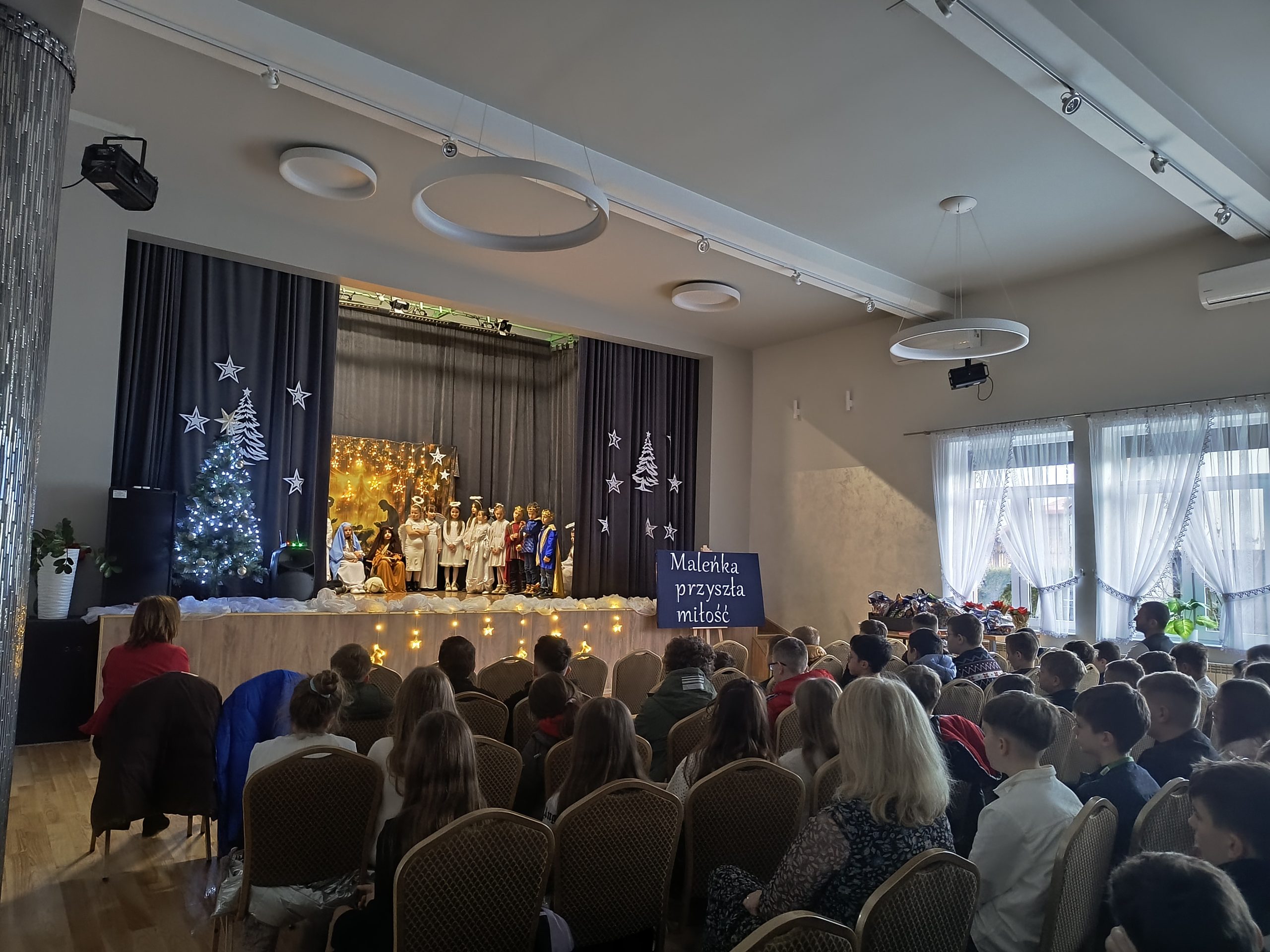 Dziś, tuż przed świąteczną przerwą, mieliśmy okazję podziwiać Jasełka przygotowane przez uczniów i wychowawców klas I - III. Mogliśmy wczuć się w świąteczną atmosferę, posłuchać pięknie wyśpiewanych kolęd i pastorałek i podziwiać wspaniale przygotowanych do występu młodszych uczniów naszej szkoły.