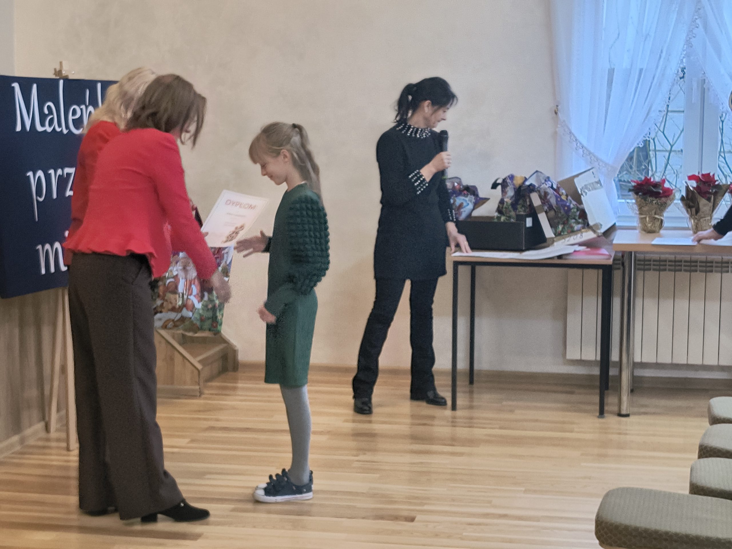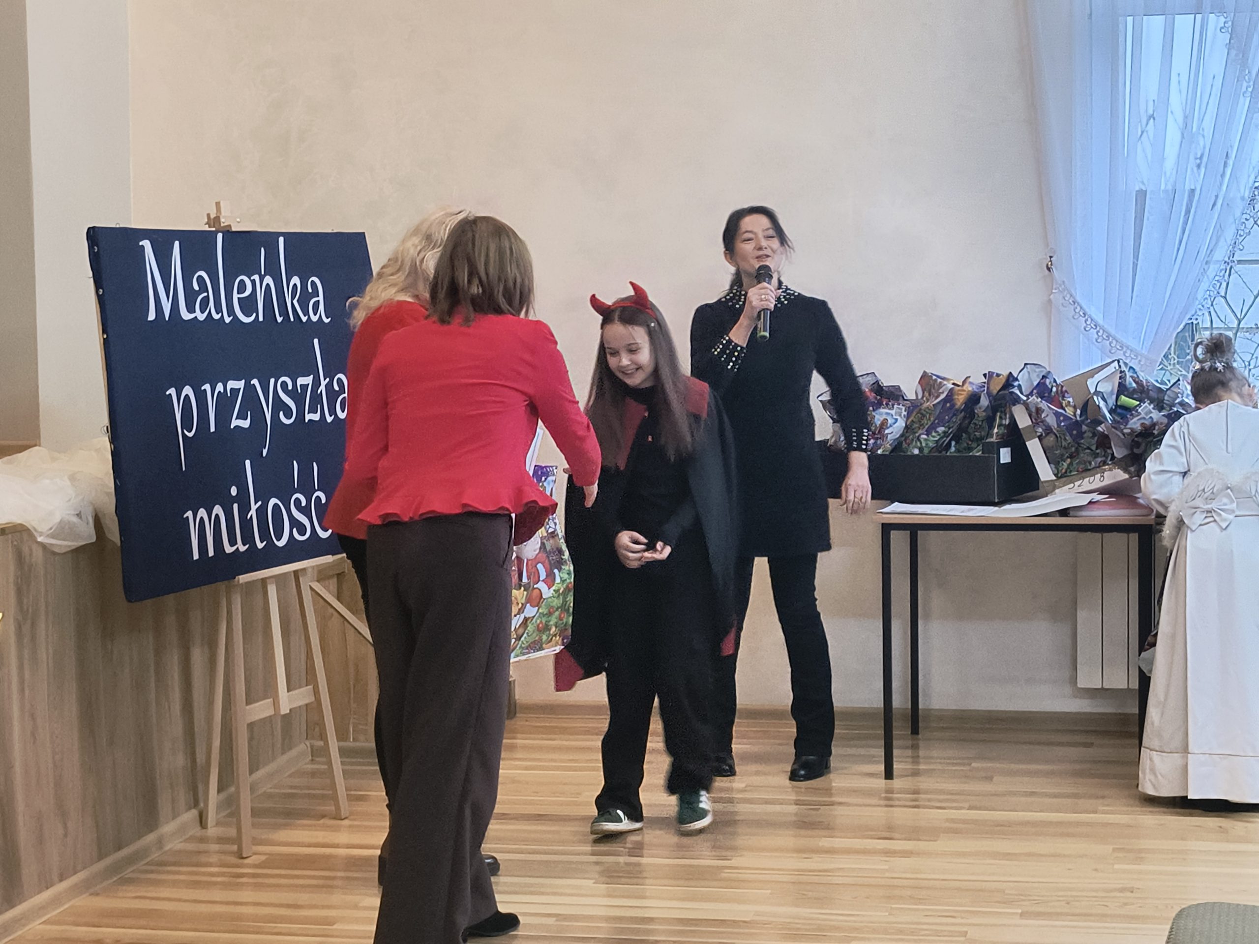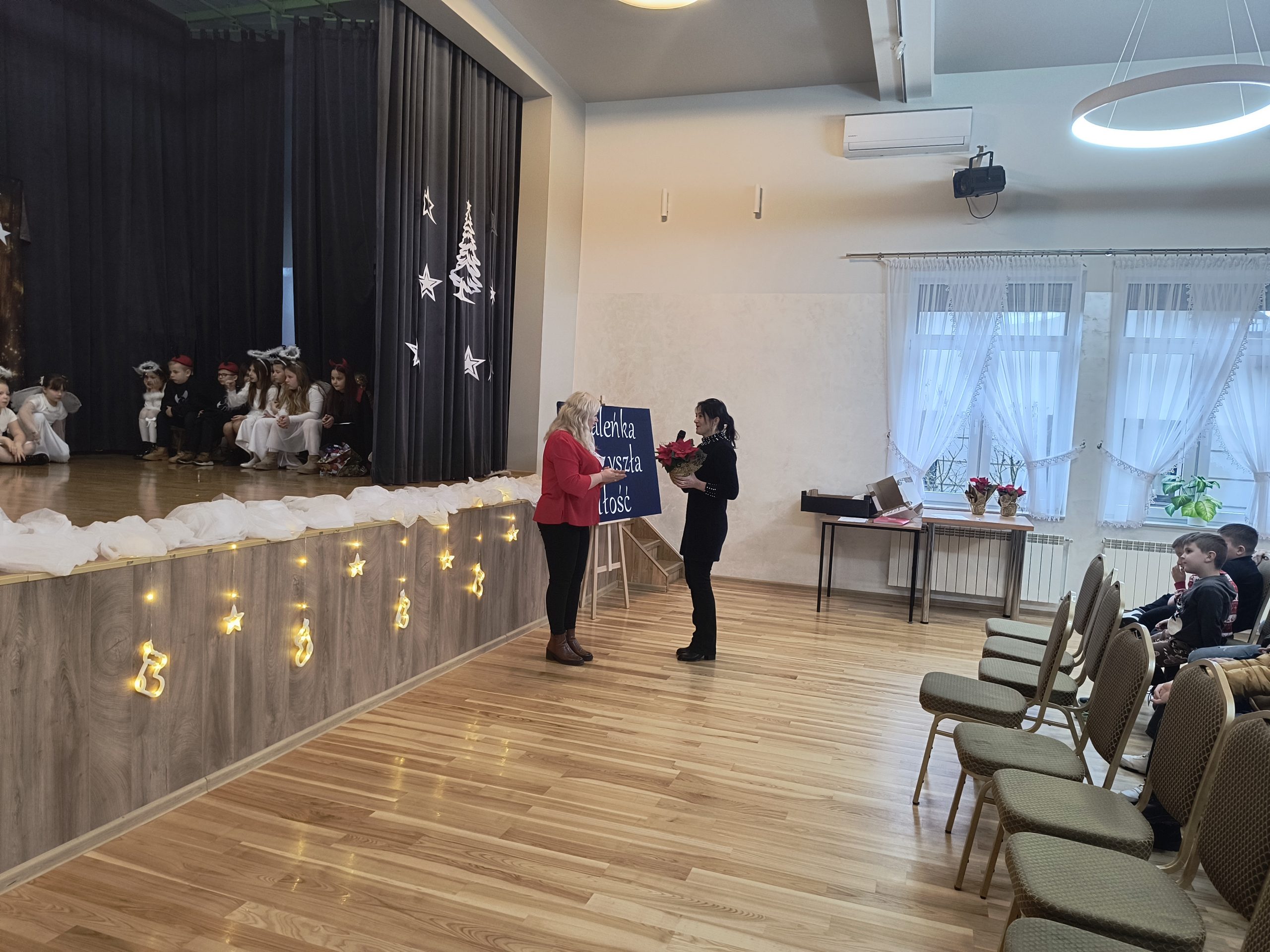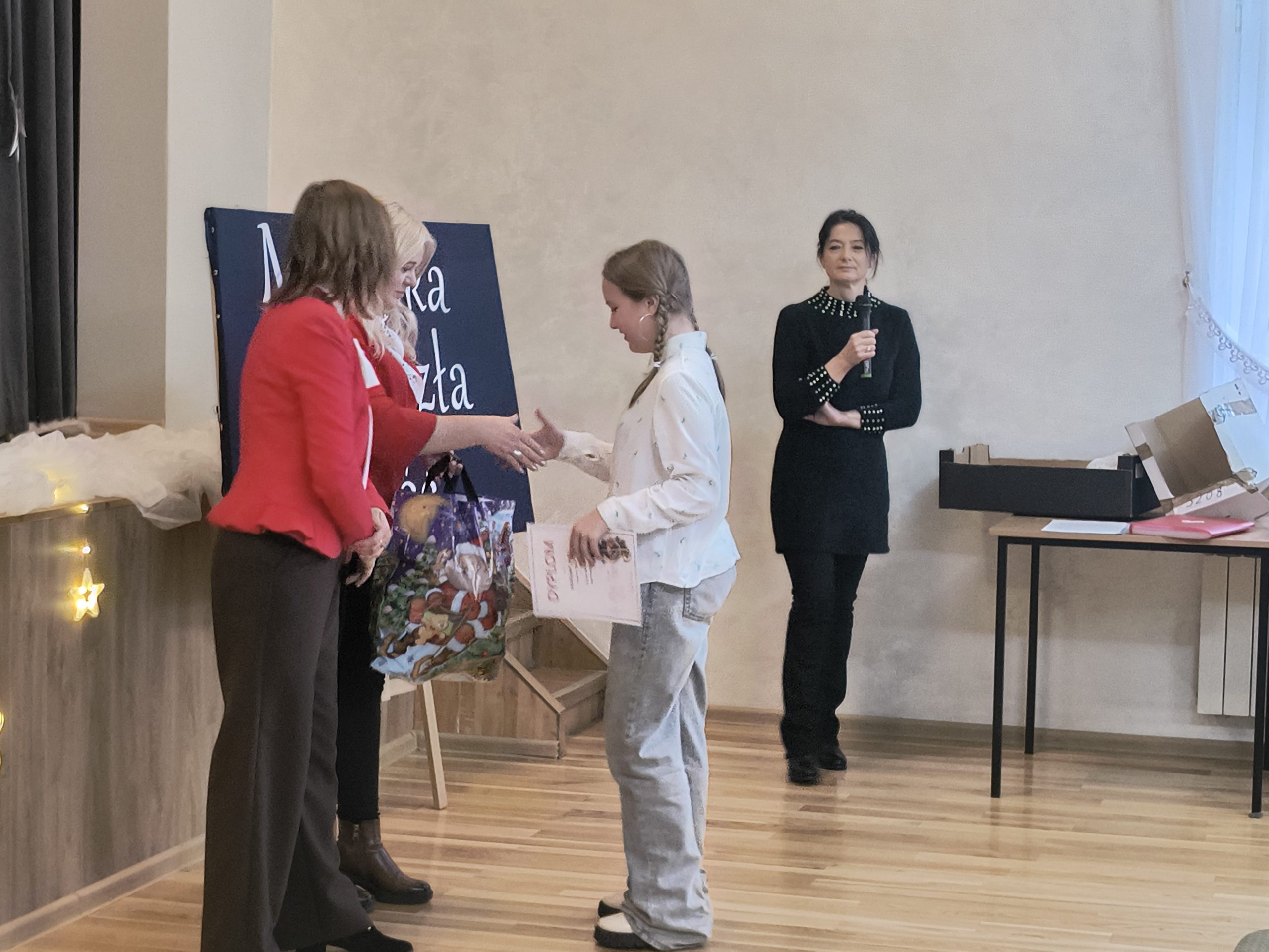 Na koniec Pani Sylwia Toropiła, wraz z Panią Dyrektor Szkoły i wraz z Panią Dyrektor GOK-u w Osieku Jasielskim wręczyły dyplomy i nagrody wyśpiewane przez uczniów w Szkolnym Konkursie Kolęd i Pastorałek.