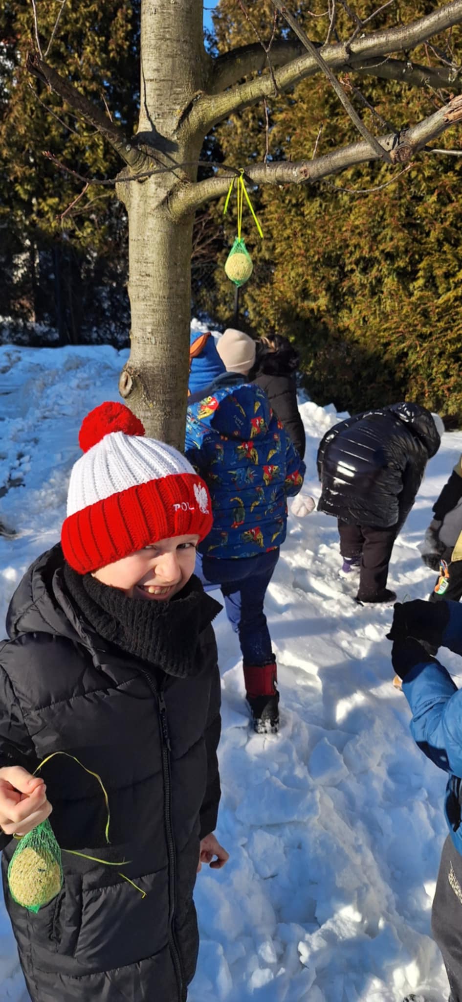 W ramach edukacji przyrodniczej uczniowie z klasy I wybrali się na dokarmianie ptaków, poznając przy tym gatunki zimujące w Polsce.