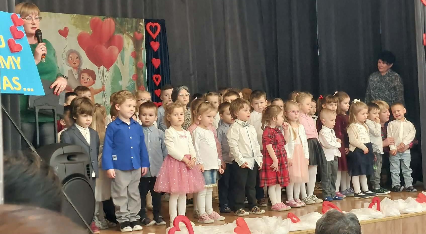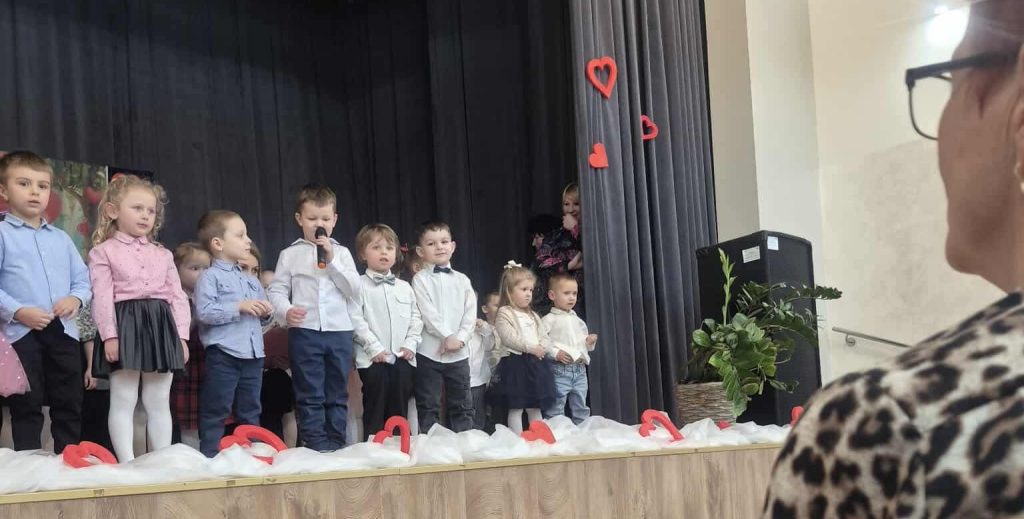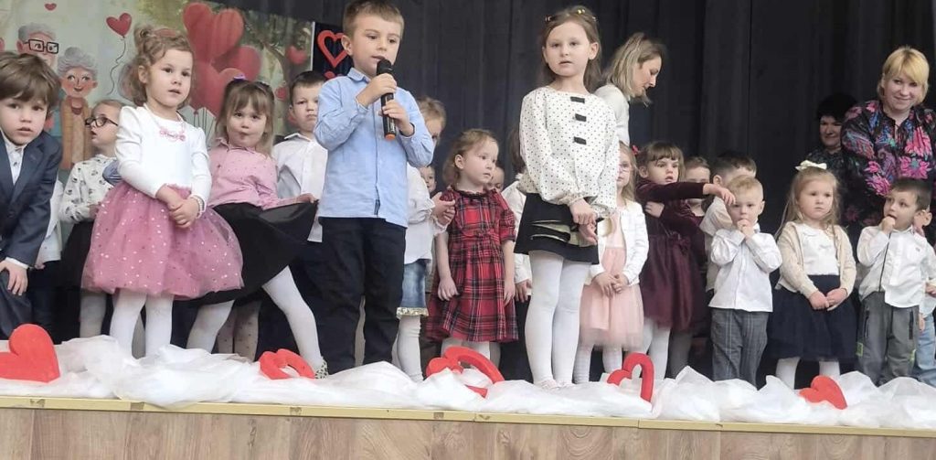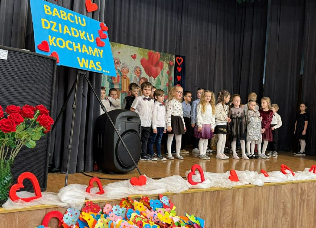 Nasze przedszkolaczki z ogromnym zaangażowaniem zaprezentowały wiersze, piosenki i tańce dla swoich babć i dziadków na dużej scenie w sali Gminnego Ośrodka Kultury. Był to czas pełen wzruszeń, uśmiechów i wdzięczności. Wszystkim babciom i dziadziom składamy najserdeczniejsze życzenia, dużo zdrowia, pogody ducha i wielu wspaniałych chwil z spędzonych z wnuczętami.