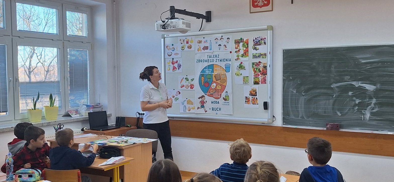 W ramach programu „Mój zawód – moja pasja”, uczniowie klas młodszych gościli dzisiaj w szkole p. kucharkę – Annę Leśniak. Z owoców, które uczniowie otrzymują w ramach unijnego programu „Program dla szkół”, wspólnie z p. kucharką dzieci przygotowały pyszne pankejki.